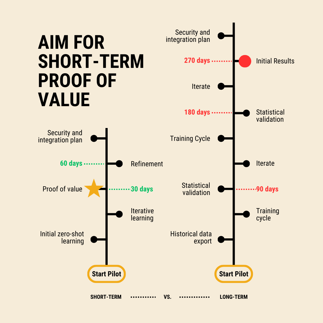 If you choose a mature process with clear success benchmarks, success won’t be a matter of opinion. Comparing AI and human performance for the first time should be straightforward and provide a foundation for validation that everyone can agree on.